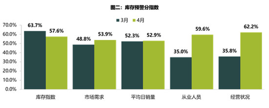 分指数方面,调查显示,4月份库存指数环比下降,市场需求指数、平均日销量指数、从业人员指数、经营状况指数环比上升。根据流通协会调查统计,4月厂家全面恢复考核和奖励,部分厂家将任务量加重,直接导致经销商库存压力骤增,目前经销商仍以消化库存、回笼资金为主,通过让利回收部分车型,从而改善盈利情况。