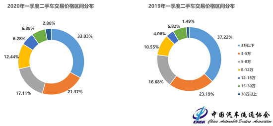 从成交价格看,3万元价格区间与历史同期相比下降较为明显,12-15万区间增幅最大。具体表现为:3万元及以下价格区间的车辆下降4.20%,3-5万区间下降1.82%,5-8万区间增长0.43%,8-12万区间增长1.90%,12-15万区间增长2.22%,15-30万区间增长0.07%,30万区间以上增长1.39%。