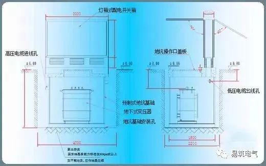 地埋式箱变的地下式组合变压器虽然允许浸没在水中运行,但为了地下式变压器的长期安全可靠运行,地坑基础内的防水及排水必须进行周全的考虑和设计。对于地下水位较低(低于地坑基础底部)的地区,采用预制式地坑结构,地坑顶部通风孔具备有效的通风和防雨能力,地坑基础底部铺设走水砂卵石,水可以直接渗入地下,对于地下水位较高(高于地坑基础底部)的地区,采用预制全封闭混凝土地坑结构,防止地表水流入及地下水渗入地坑内。