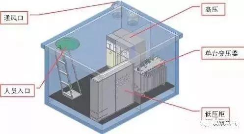 欧式箱变的高压室一般是由高压负荷开关、高压熔断器和避雷器等组成的,可以进行停送电操作并且有过负荷和短路保护。低压室由低压空气开关、电流互感器、电流表、电压表等组成的。变压器一般采用 S9 或干式的等。