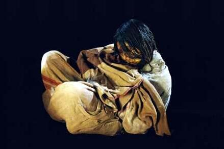 少女是在一座陶土的墓穴中发现的,四周没有任何挣扎的痕迹,身体上也没有被殴打的痕迹,专家们震惊的发现,女孩的右手紧紧的抓住自己的衣角,是紧张,痛苦还是决心?由于是靠极度冰冷才保存下来的,少女的形态和埃及木乃伊有着很大的区别,据CT检察结果表明,在少女体内的器官完好无损,大脑也完全没有遭到损坏,心脏里甚至还有血液,后来经过英国研究人员的彻夜研究,发现了少女死亡的秘密,在少女的胃里发现了部分残留物,以及从少女的衣着打扮来推断,极有可能是死于祭祀,古代印加人有用女子做祭祀品的习俗,成为祭祀品的女孩在她人生最后一个月里,被大量的使用酒精类饮品和食物。