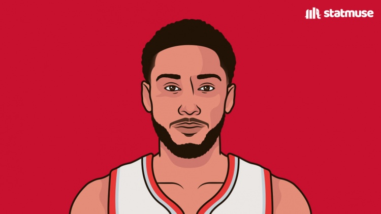 而最为精髓的是,StatMuse用的配图是西蒙斯,还给西蒙斯“穿”上了开拓者球衣。