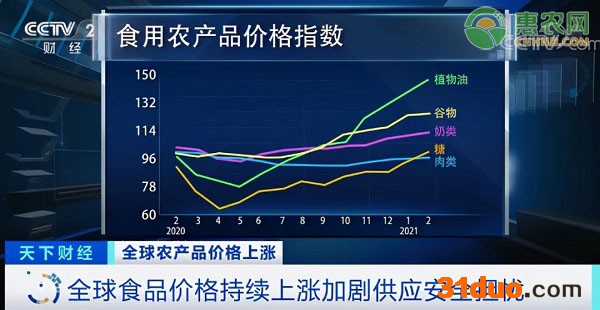 3、2021年1月,国际大米价格同比上涨42.3%。国际小麦市场也处于7年高位。
