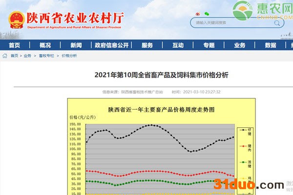陕西省2021年第10周畜产品及饲料集市价格表