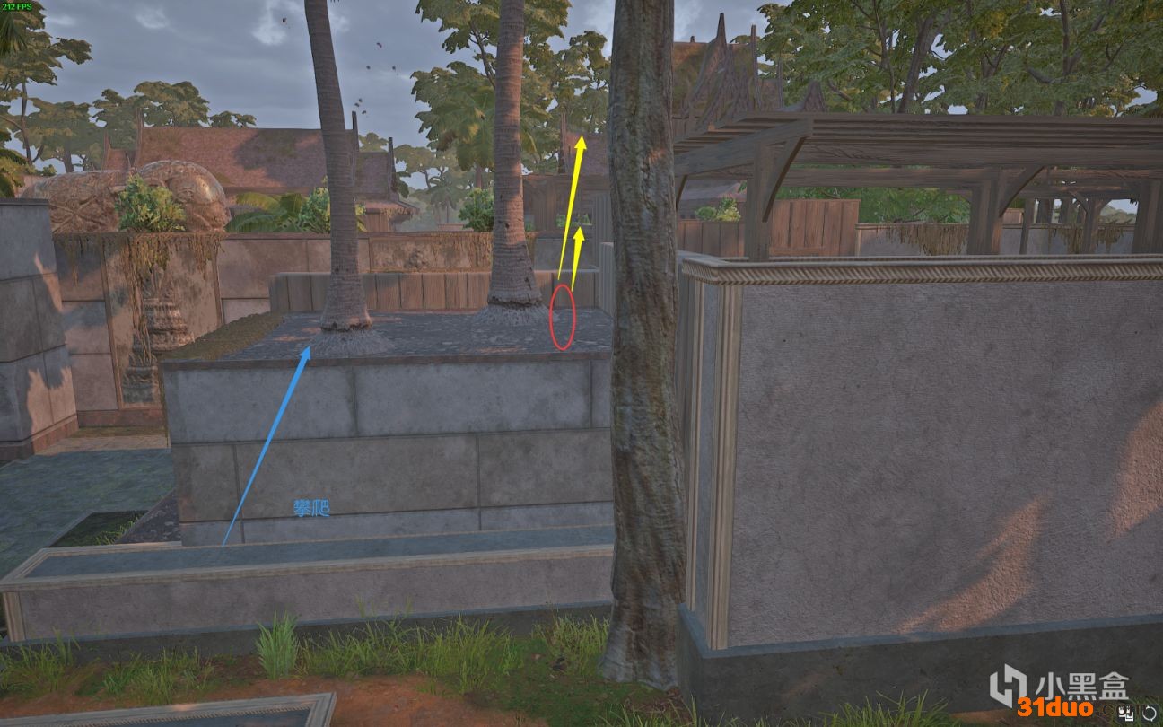 下面的操作你学会了分分钟看傻对面(对于FPP相当有利)我们先进行斜着加速跑起来让后到台阶边大跳就可以站到墙壁上。