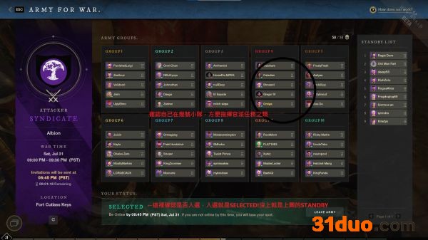 这时是等待领土所有者编辑50人先发名单(下方显示STANDBY等待picking)