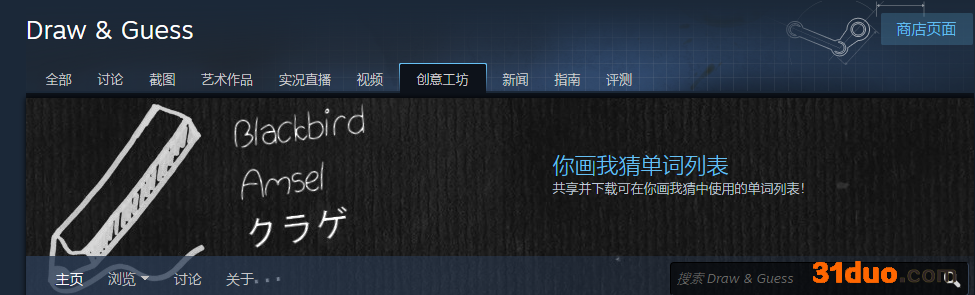 Draw Guess这款游戏玩家可以进入创意工坊添加新的词库,以下是详细步骤: