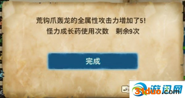 每种成长药都可以使用10个,总共30个,攻击+50是非常可观的数值。可以从怪物巢穴的宝箱中随机开出,也可以从梅拉露商会兑换。