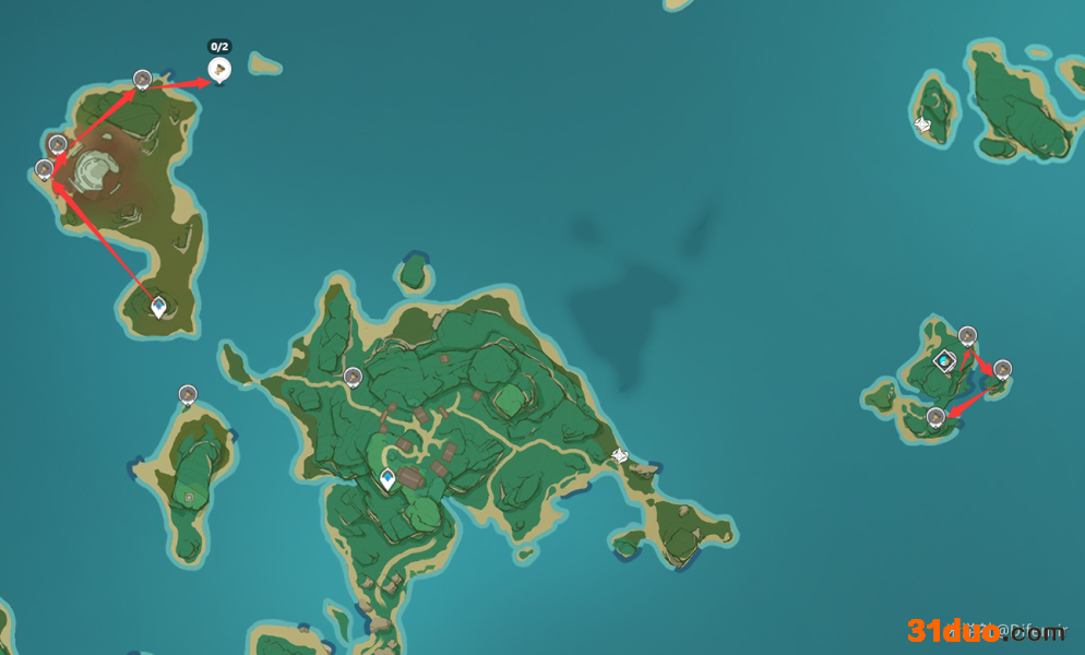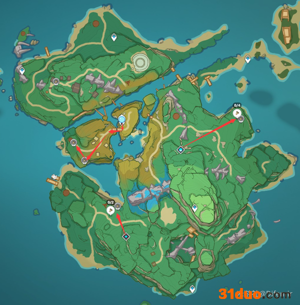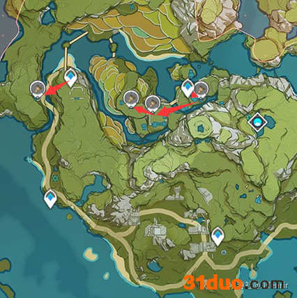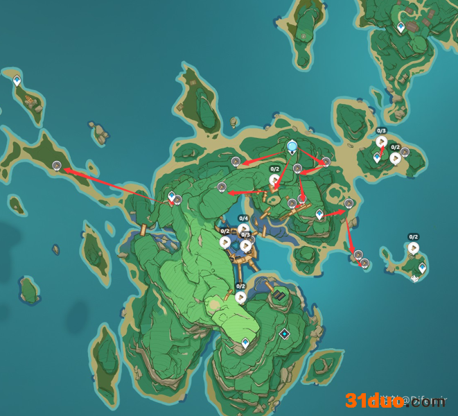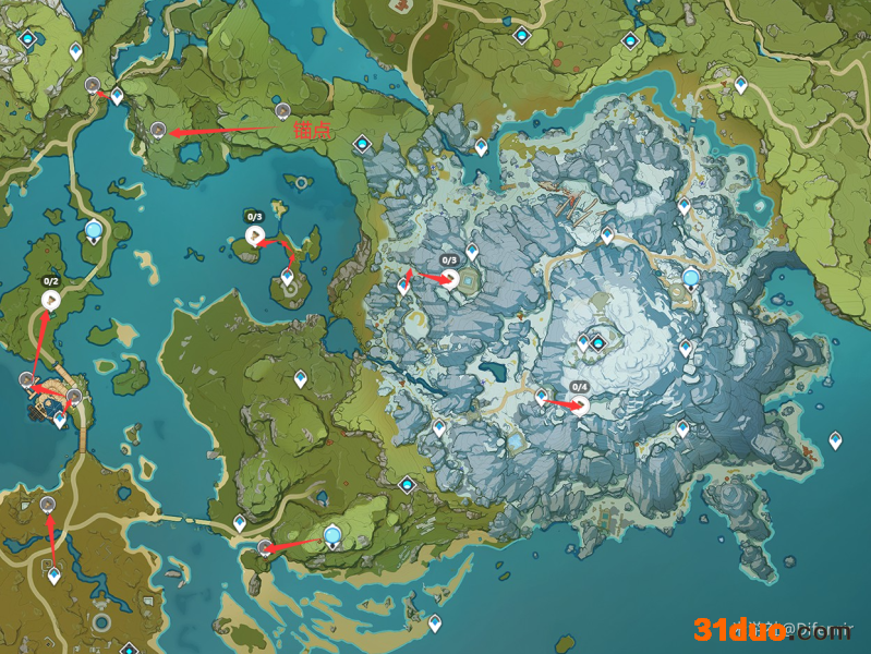 每日调查上限只有100个,按照这个路线就能拿完100个圣遗物调查点,不用跑全图。