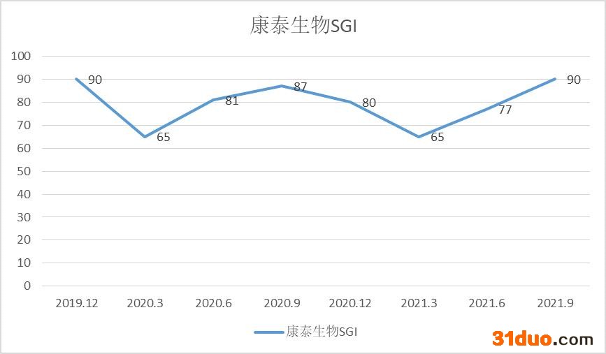 康泰生物最新的和讯SGI指数评分为90分,相较于第二季度的评分有了显著的提升,排名也从第二季度的第123名直接提升到第16名。