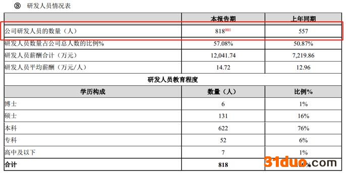 2.研发费用增长主要来源人员增加与避税需要