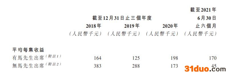 招股书显示,视频节目营销服务仍为壹九传媒的第一大收入来源,而有马红漫出席的视频节目平均收益多数情况下要比没有他出席的节目要高。