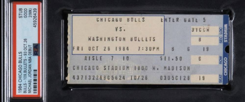 5月30日讯 据体育商业记者Darren Rovell报道,乔丹常规赛首秀的门票在一家拍卖行拍出了24907美元的高价。1984年,乔丹生涯首秀的对手是华盛顿子弹(现奇才)。