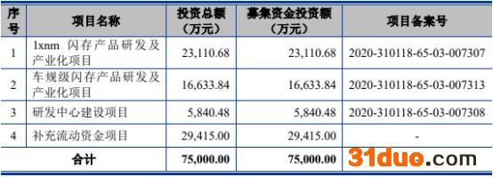 东芯股份本次发行募集资金总额33.37亿元,扣除发行费用后,募集资金净额为30.64亿元。东芯股份最终募集资金净额比原计划多23.14亿元。东芯股份于2021年12月7日披露的招股说明书显示,公司拟募集资金7.50亿元,分别用于1xnm闪存产品研发及产业化项目、车规级闪存产品研发及产业化项目、研发中心建设项目、补充流动资金项目。