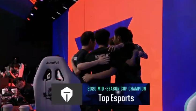 韩国解说:“果然是TOP esports,竞技力也是top!拿到了季中杯赛的冠军,冲到了top的位置!”