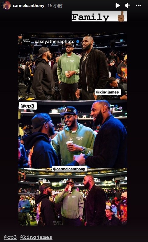12月7日讯 今日,湖人球星安东尼更新社媒晒出了自己在斯台普斯观战布朗尼比赛和詹姆斯&保罗的合照。