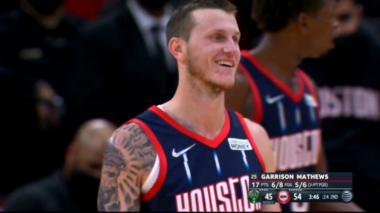 半场比赛,火箭首发小前锋马修斯再次打出微波炉表现,半场19分钟8投6中,三分6中5轰下17分,还有2篮板1抢断2盖帽进账。