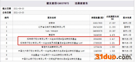 招商银行股份有限公司-兴全合润混合型证券投资基金持有健友股份2934.39万股,占流通股比例为2.417%,是其第五大流通股东;招商银行股份有限公司-兴全合宜灵活配置混合型证券投资基金(LOF)持有健友股份2769.93万股,占流通股比例为2.281%,是其第六大流通股东。