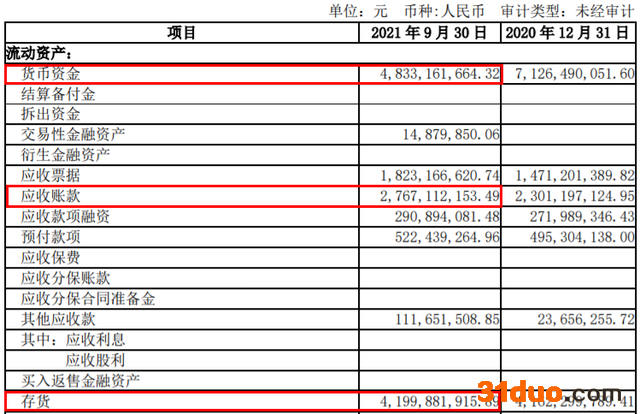 截至三季度末,三安光电总资产451.85亿元,较上年末增长15.93%。其中,货币资金为48.33亿元,上年期末为71.26亿元;应收账款27.67亿元,上年期末为23.01亿元;存货42.00亿元,上年期末为41.62亿元。