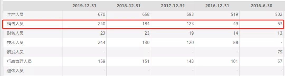 然而,在销售模式未变和营收略减的情况下,康泰生物2019年的销售费用却大幅下降21.96%。此外,销售团队的壮大也没有让公司业绩得以提升。年报显示,康泰生物2019年的销售人员为240人,比2018年的184人,增加人员逾30%。