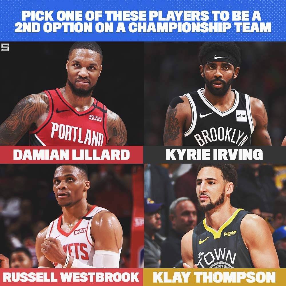 美媒晒图选争冠队二当家:利拉德&欧文&威少&克莱 你选谁?2020-06-03 01:56:34 Twitter6月3日讯 美媒晒出一张组图,发问:“在这