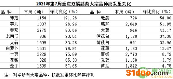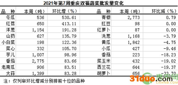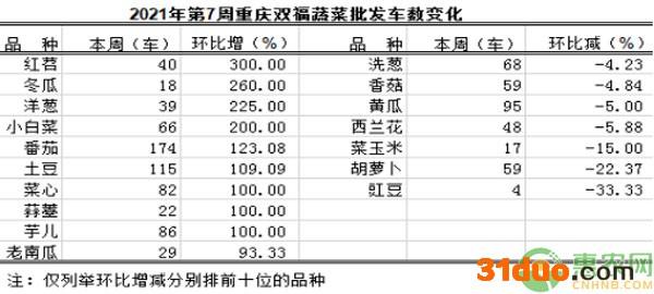 重庆蔬菜批发交易周分析2021年第7期(总237期)