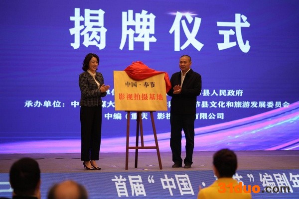 (奉节县人民政府副县长于潜和中编(重庆)影视传媒有限公司董事长马红艳共同为中国奉节影视拍摄基地揭牌)