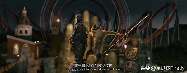 这其实就是一个完整的闭环,外星人看不起外国大佬,外国大佬看不起中国,中国人又看不起耍猴的,结果最后耍猴的制服了外星人,这个鄙视链其实也是一种讽刺。