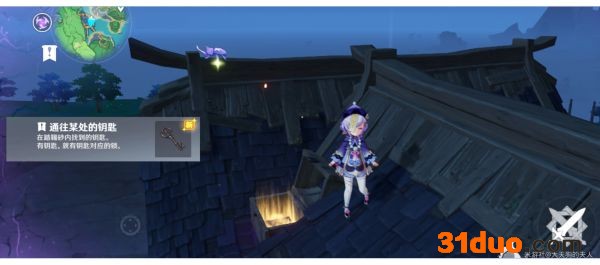 图示位置的屋顶上有一个箱子,打开箱子获取钥匙。