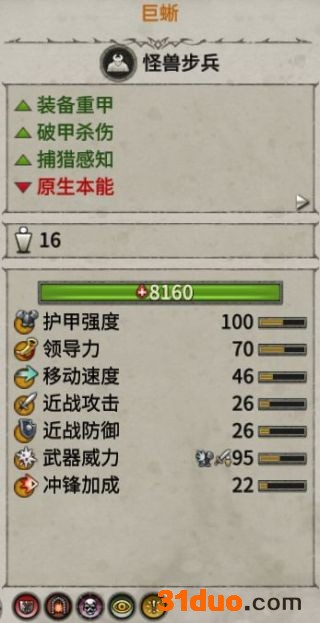 1.3.1 前面也说过,巨兽面对反大单位和远程攻击是很脆弱的,因此让精锐的怪兽步兵、远程射手集火的效率比单挑高得多。注意远程集火时最好用步兵缠住巨兽,而不是用我方巨兽,否则容易造成误伤。