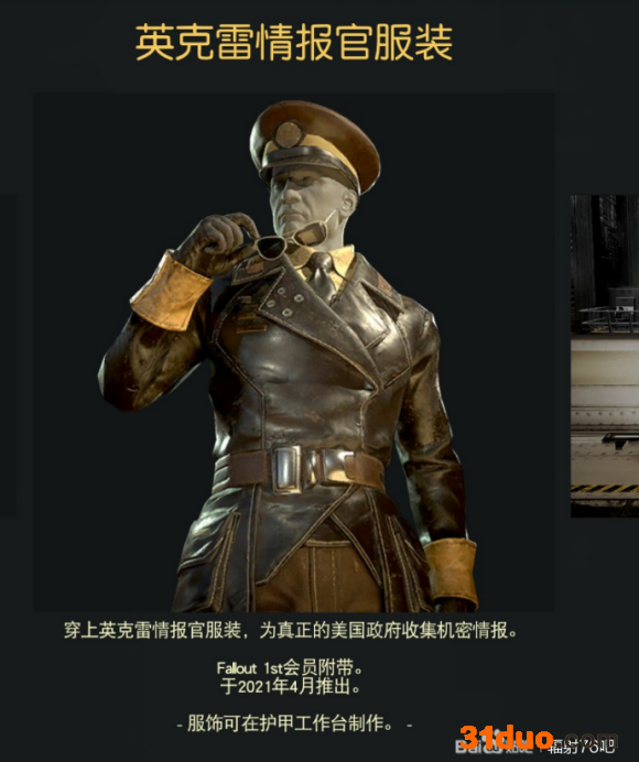 2021年8月会员可以购买的衣服,这衣服源于辐射4核子世界的NPC西托,我不知道这究竟是不是会员独享,但是看见有1ST标记。