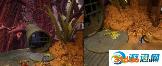 科迪到了最上层后,操作红色拉杆,小梅就能利用另一个台子两人会合了。之后两人会经历一段滑轨。