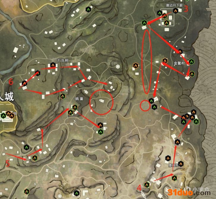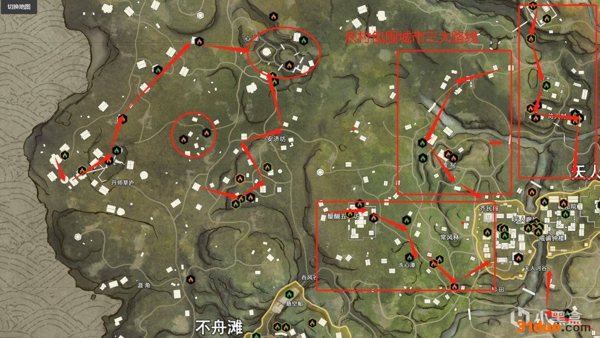 5,6号路线也可选择反方向行进,转为农村包围城市(无人城)路线.