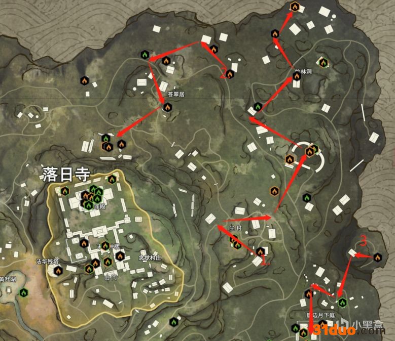 以各金堆,绿堆,两点之间直线最短的原则,路上左右看是否有有价值的道具需要拐弯.