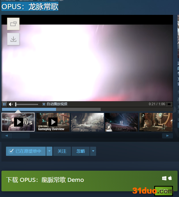 2.steam商店页面搜索OPUS龙脉常歌。