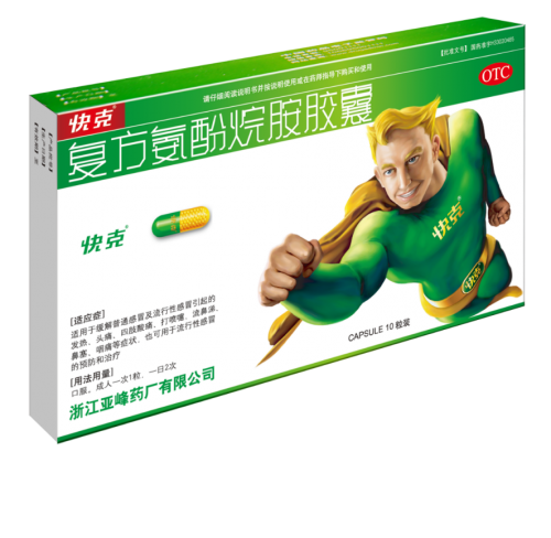 快克复方氨酚烷胺胶囊在普通感冒药的基础上,特别添加了抗病毒成分的“金刚烷胺”,在感冒初期36小时内服用,可以有效缩短感冒病程。另外,快克还含有马来酸氯苯那敏,人工牛黄等成分,可缓解普通感冒或流行性感冒引起的发热、打喷嚏、流鼻涕、鼻塞、咽痛等症状。