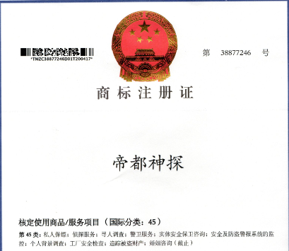 原标题:北京荣盛注册“帝都神探”45类私家侦探公司商标北京荣盛商务调查公司办公室了解侦探调查行业发展现状,我们发现北京荣盛国际商务调查公司成功注册商标这意味着“侦探