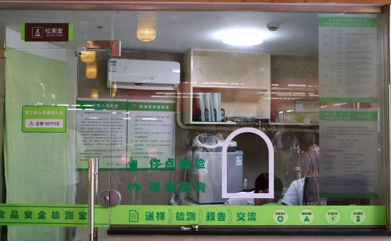 在新型农批市场,专门设立食品安全检测室。将严格执行检测检疫制度,由专业的检测人员每天批量抽检市场内的蔬菜、豆制品、肉类等,利用检测设备进行试剂检测,并将检测结果及时公示于市场显示屏,依法将不合格产品予以销毁,以此来确保老百姓舌尖上的安全。