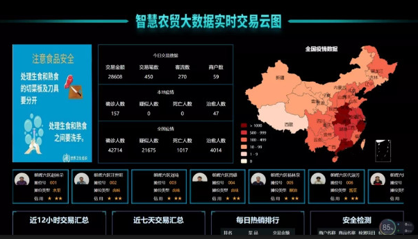 智慧农批市场表现为:场内所有农产品在品种、来源、价格、交易情况等方面提供智慧化系统管控服务并公示于众,所有的经营户都有一块“身份牌照”(信息公开播报于每个摊位的智慧显示屏),确保商户信息、摊位产品信息一览无余,切实保障老百姓菜篮子的安全。