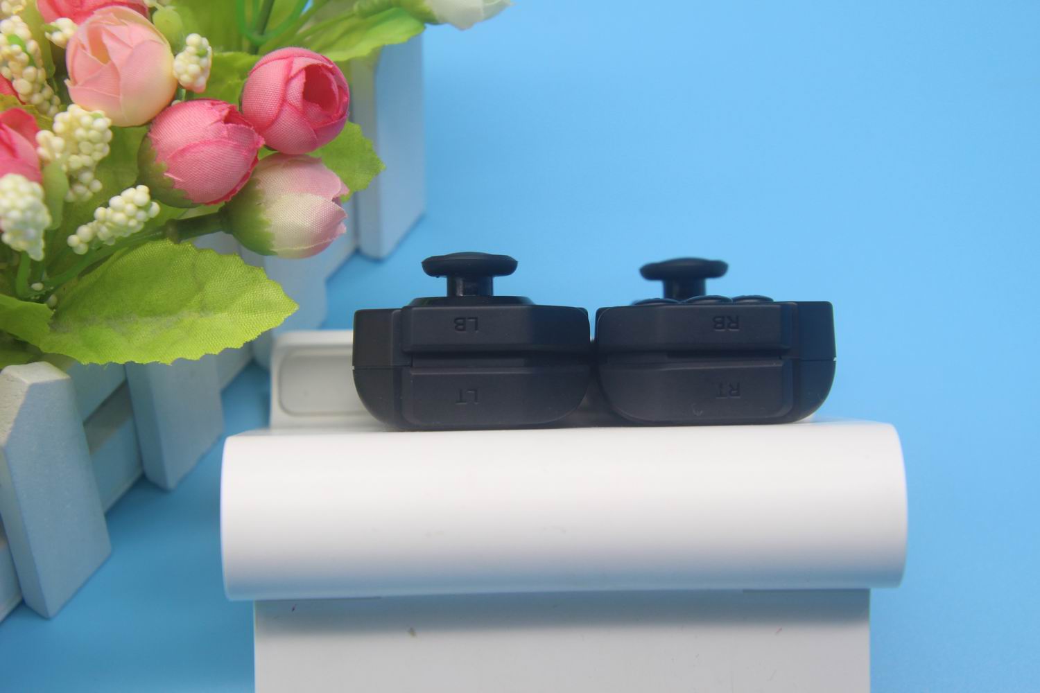 北通H2单双柄两用游戏手柄采用了ABS材质,摇杆表面为橡胶材质,拔动时阻尼适中,在左侧手柄上还集成有单颗返回键,在右侧手柄上集成有开始键,从这种设计就可知道这款手柄并不会像switch的手柄支持双人双打使用。