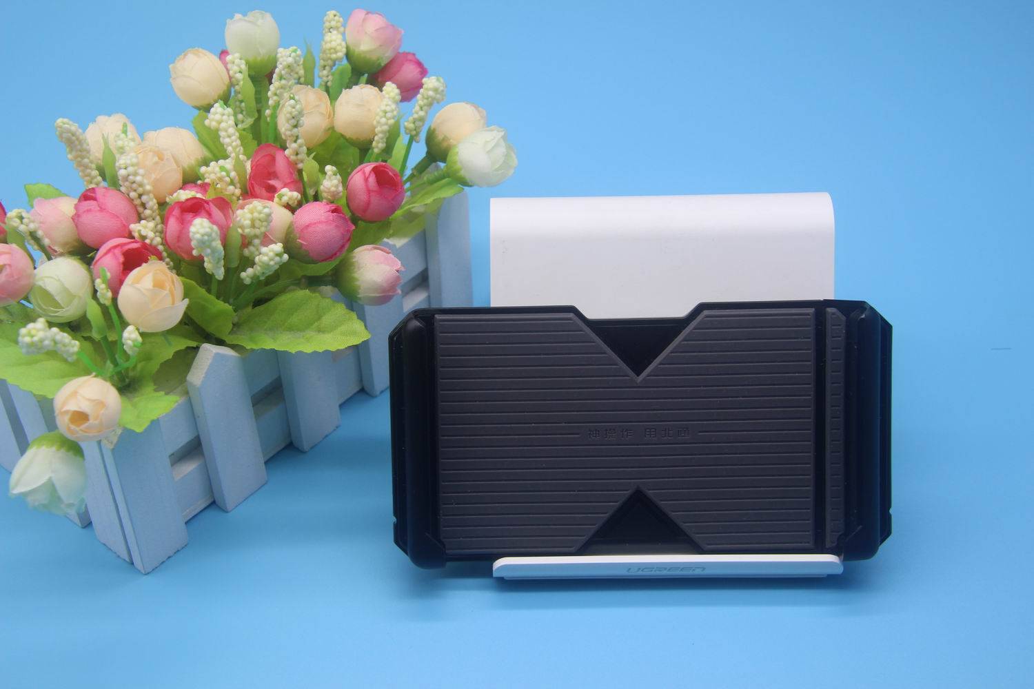 手机放置架采用了可拉伸设计,可以满足最宽约17.5cm的手机使用,市面上主流5-6.5寸手机使用完全没有问题。放置架使用了条纹橡胶表面,增加了摩擦力,保障了手机的稳定性。