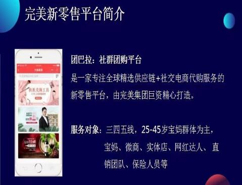 团巴拉是完美公司旗下的社交电商平台,团巴拉用代购模式,以S2B2C模式+团长级差拿货模式,一端连接源头品牌及全球原产地海外仓,通过专业买手+消费大数据智能分析挑选有品质保证的高性价比货源,一端连接微商、实体店、代购、自媒体人、短视频带货达人等,实现商品流通的新零售模式。