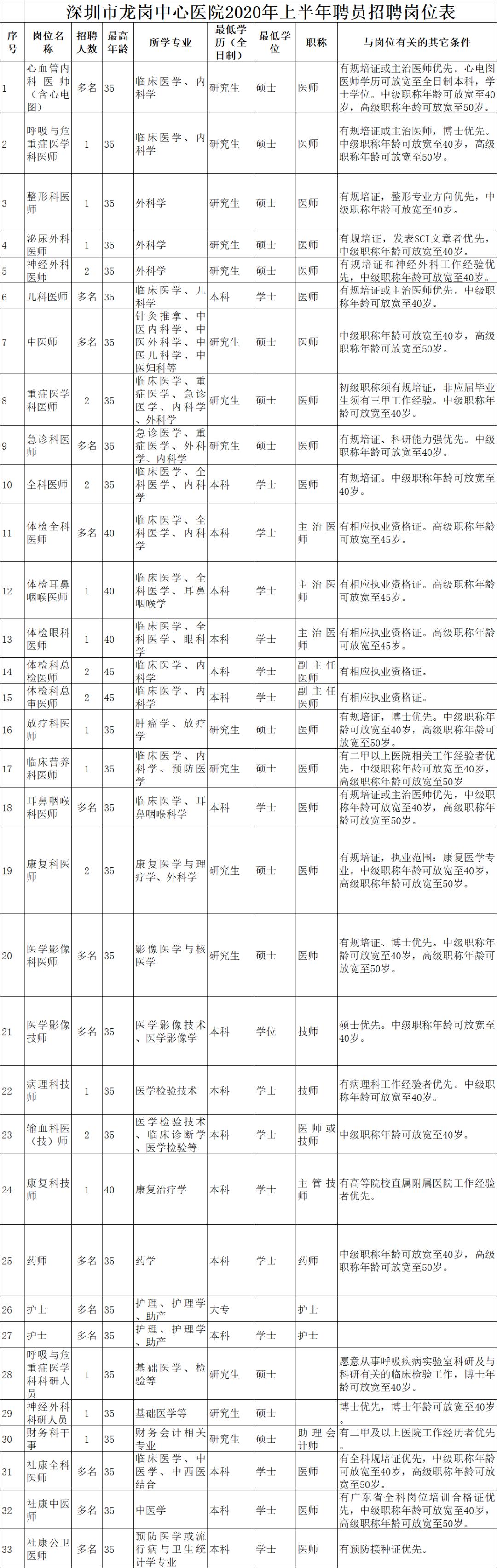 4.地址:深圳市龙岗区龙岗大道龙岗段6082号龙岗中心医院人力资源部(院部岗位);深圳市龙岗区龙岗中心城黄阁路黄阁翠苑323-2二楼,龙岗中心医院社区健康服务管理中心(社康岗位)。