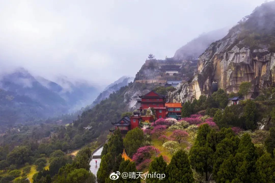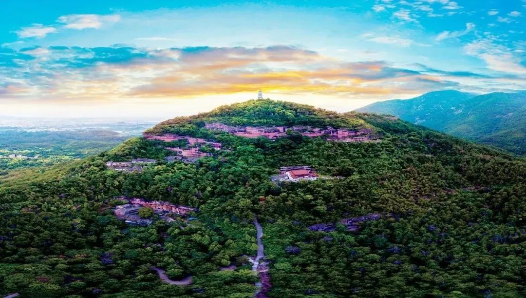 赤城山海拔338.8米,是一处释道睦居的圣山,因山色赤赭、状如城堡得名,系红色砂砾岩组成的丹霞地貌。每当晨昏,白云出岫,彩霞映塔,蔚为壮观,有“赤城栖霞”之美称。