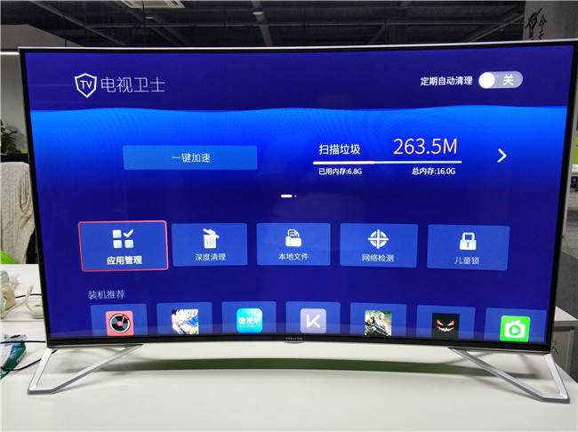 然后插入U盘,打开应用市场中的电视卫士,选择应用管理中的极速安装,他会自动的识别U盘并且找到刚刚下载好的当贝市场软件;