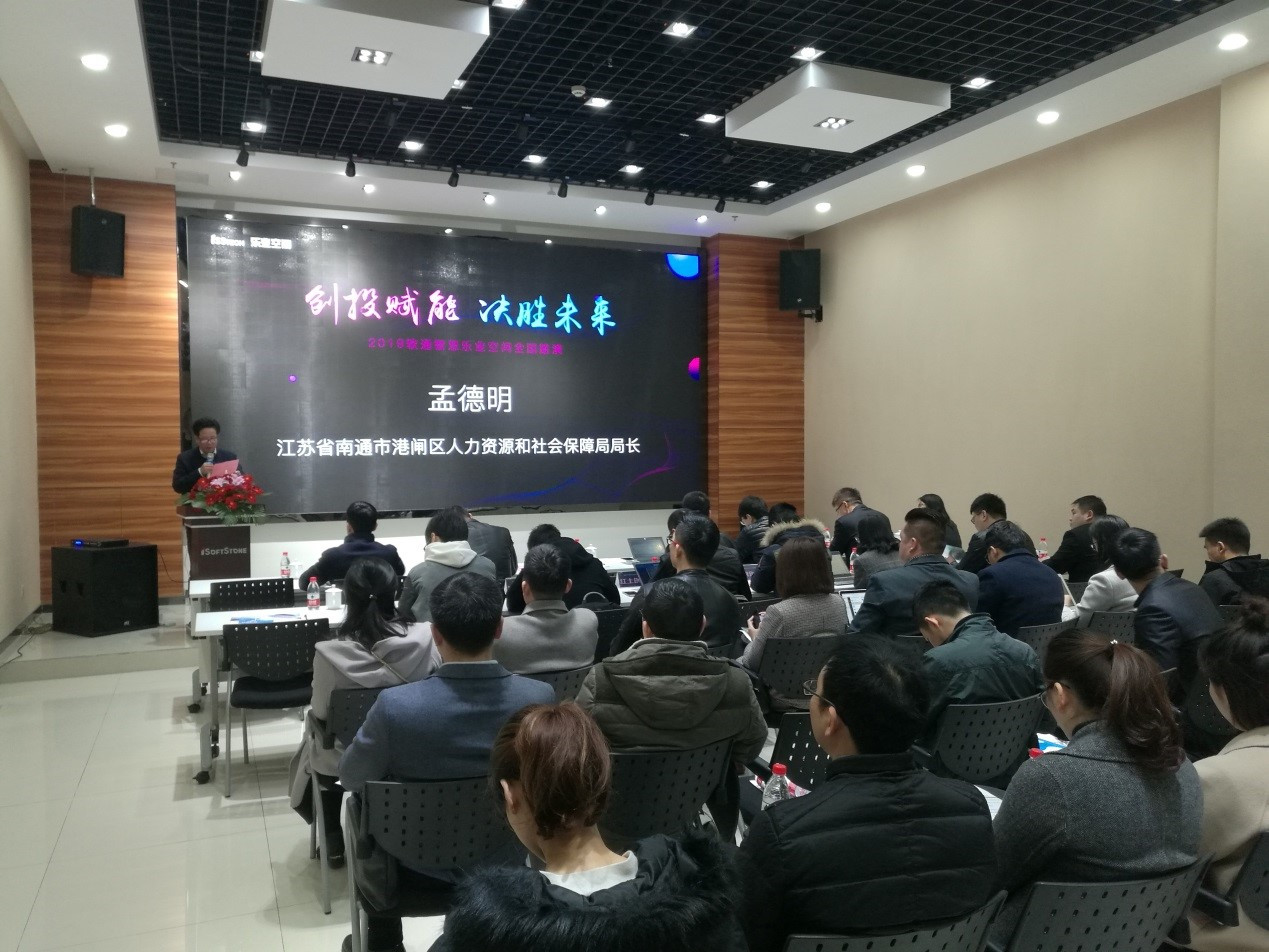 南通市港闸区人力资源和社会保障局孟德明局长发表致辞,他表示,2019年是决胜高水平全面建成小康社会的关键之年,南通在政策扶持、创业平台、技术支撑和项目服务等方面,为创新创业聚力,着力优化软硬环境。此次2019软通智慧乐业空间全国路演江苏站选择落地南通,就是最好的印证。希望通过这个平台的牵线搭桥,切实推进人才、项目与资本的无缝对接。