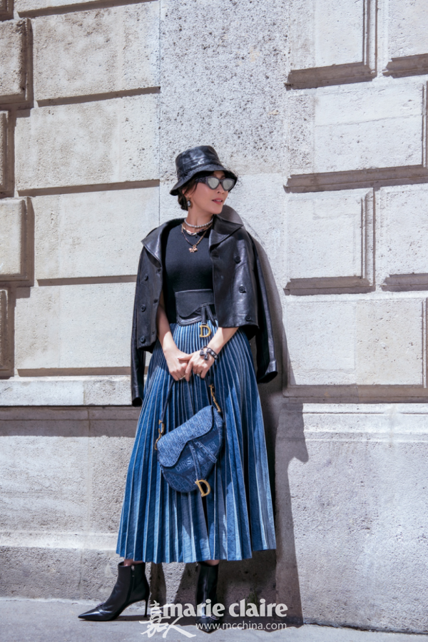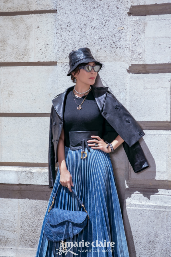 著名演员刘嘉玲精彩诠释DIOR迪奥二零一九秋冬成衣系列。黑色皮衣搭配褶皱设计半身裙一展率性风范,丹宁马鞍包点缀OBLIQUE图案刺绣尽显别样风情。