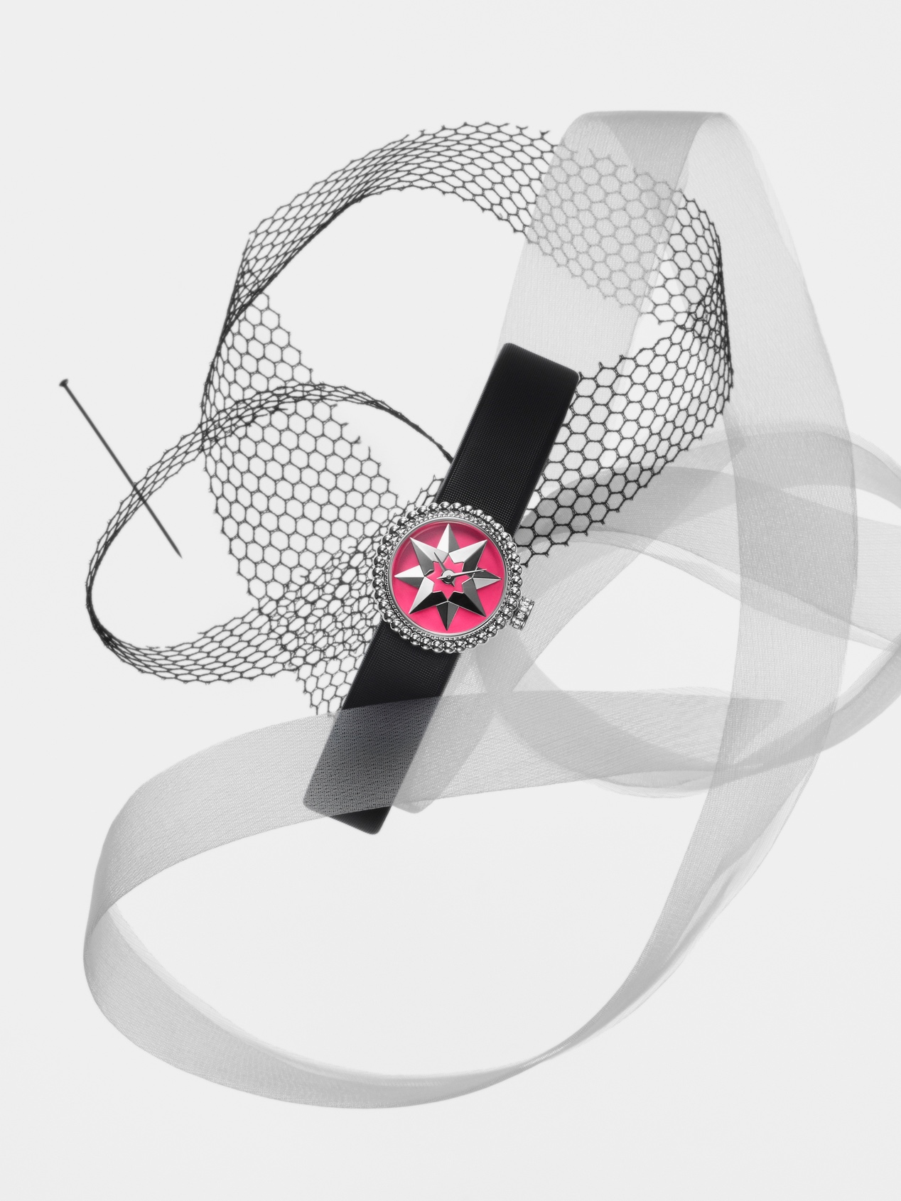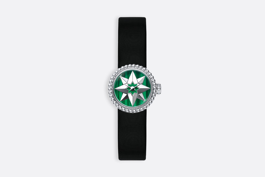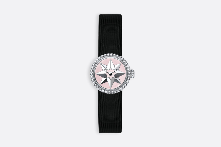 La Mini D de Dior Rose Des Vents系列腕表,星星,迪奥先生的幸运符,玫瑰,迪奥先生最爱的花朵,构成迪奥作品中永恒的主题,亦是Rose des vents(罗盘玫瑰)系列的灵感之源。