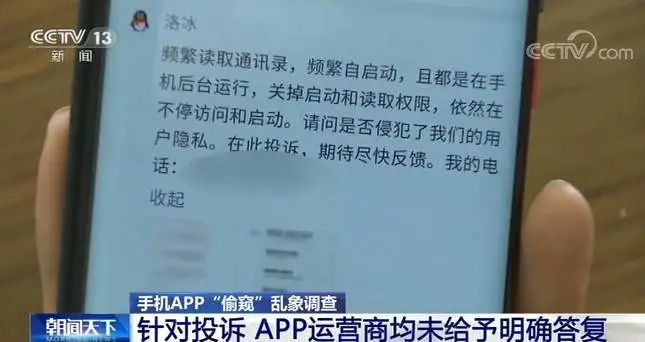 记者还联系了多家自启动程序、后台搜集用户信息行为频繁的APP运营商,直到记者发稿,没有一家运营商针对记者的投诉给予明确完整的答复,记者投诉的问题依然存在,并没有改变。