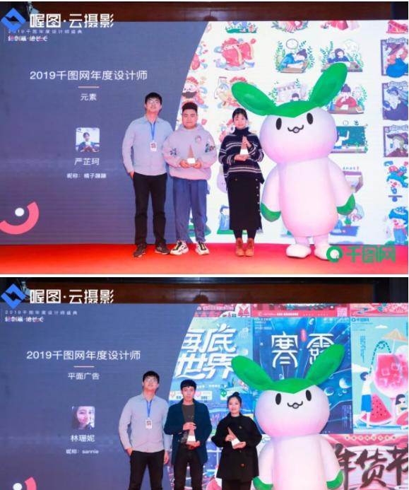 同时向千图网千小兔形象设计作者成帅、向天歌PPT颁发2019最佳合作伙伴。